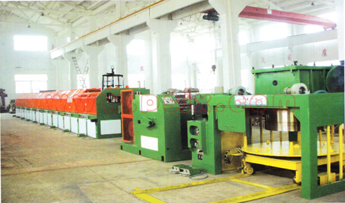 | 本公司生產(chǎn)的直進式系列拉絲機是引進國外技術(shù),吸收消化后研制出次的特別適合于拉絲高強度、高性能要求的拉絲設備。主要適用于預應力鋼絞線、鋼簾線、胎圈鋼絲、制繩鋼絲、不銹鋼絲、汽保焊絲、埋弧焊絲等產(chǎn)品的生產(chǎn)。該系列拉絲機拉拔卷筒直徑為φ350-φ1200mm,進線直徑可達φ16mm,小出線直徑可為φ0.7mm. 本設備具有人機對話、電機超溫保護、水壓異常、計米、滿尺報警、故障顯示等多種功能。其傳動結(jié)構(gòu)采用硬齒面減速箱+窄V聯(lián)組帶或 平面雙包渦輪副減速箱+窄V聯(lián)帶組,噪音低;卷筒全部采用窄縫式水冷卻與風冷卻相結(jié)合方式,冷卻效果特好,調(diào)速方式采用交流變頻及西門子PLC,是一種高效、操作方便、自動化程度高、工藝范圍寬的拉拔設備。 |